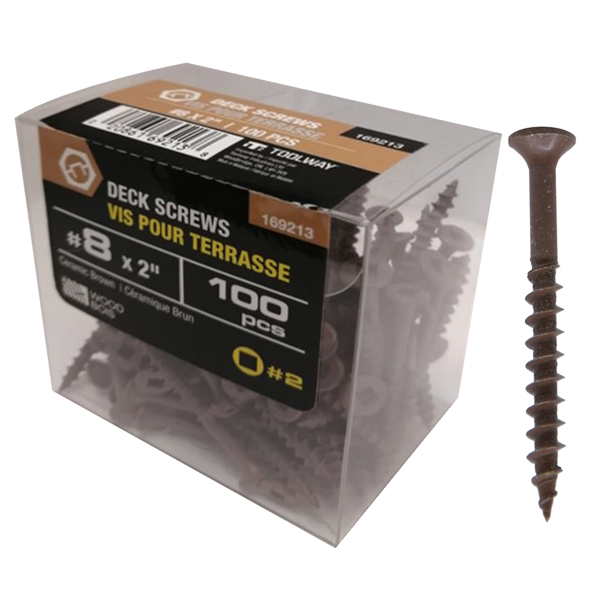 100PK Deck Screws Brown Ceramic #8 x 2in
