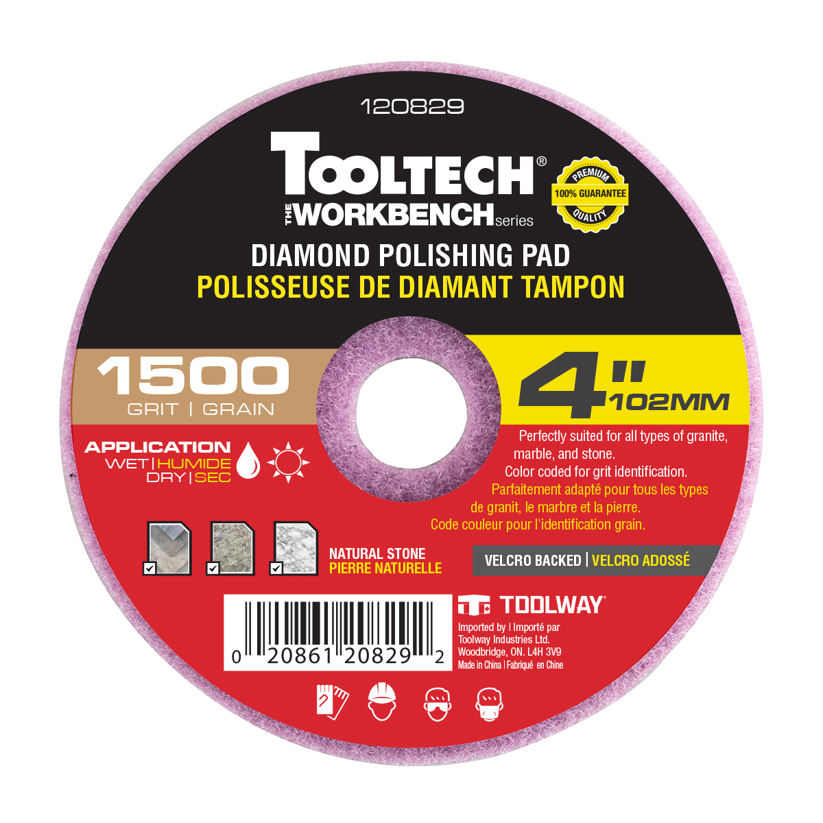 Diamond Polishing Pads from Toolway are the best choice for all your stone polishing needs. Can be used to create a superior shine on, Porcelain, Marble, Ceramic and Granite. Designed for wet or dry grinders and polishers these pads are also color coded for easy grit identification and are velcro backed for quick changing.