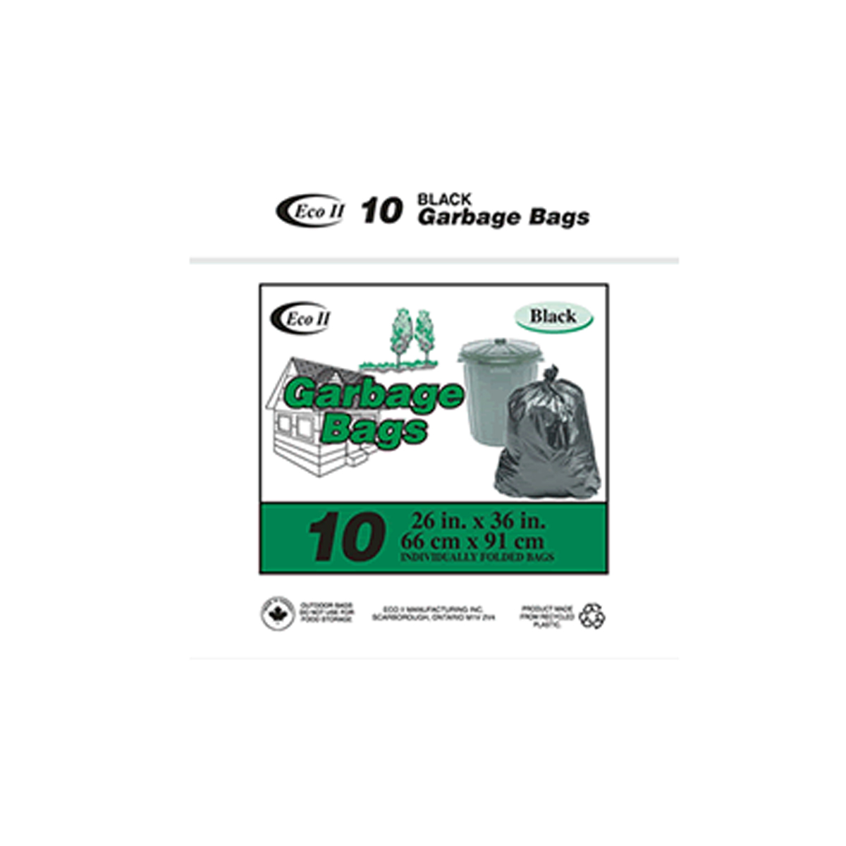 10PK Household Garbage Bags 26x36in Black
