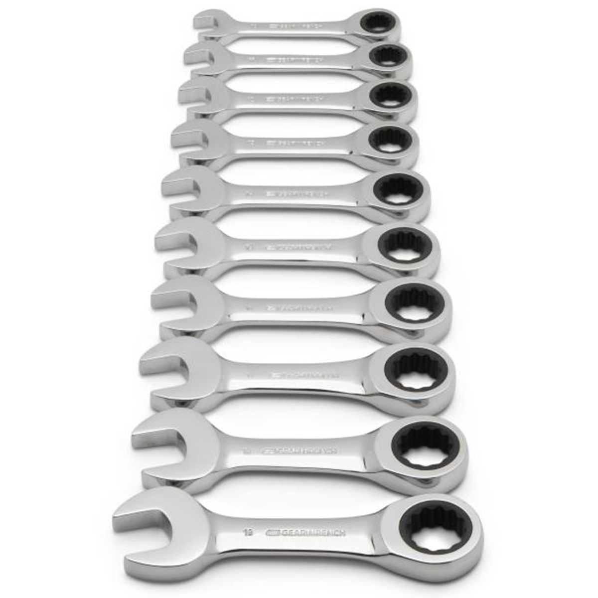 10PC Stubby Ratcheting Combination Wrench Set 72-Tooth 12-Point - Metric