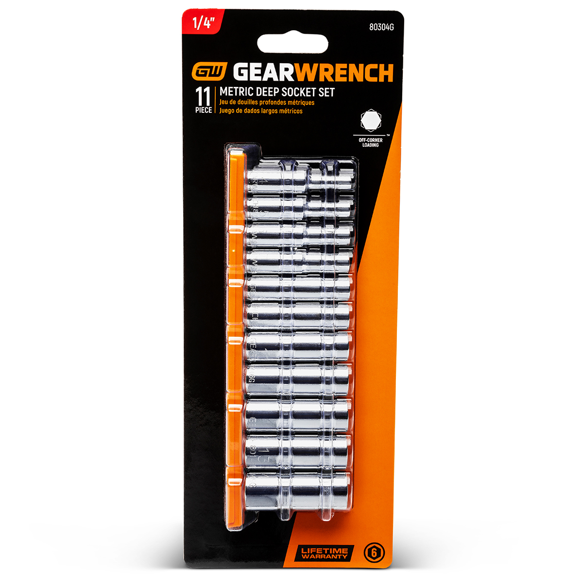 The GEARWRENCH 11pc 1/4in Drive 6-Point Deep Socket Set (4mm-14mm) is designed for precision; durability; and ease of use.