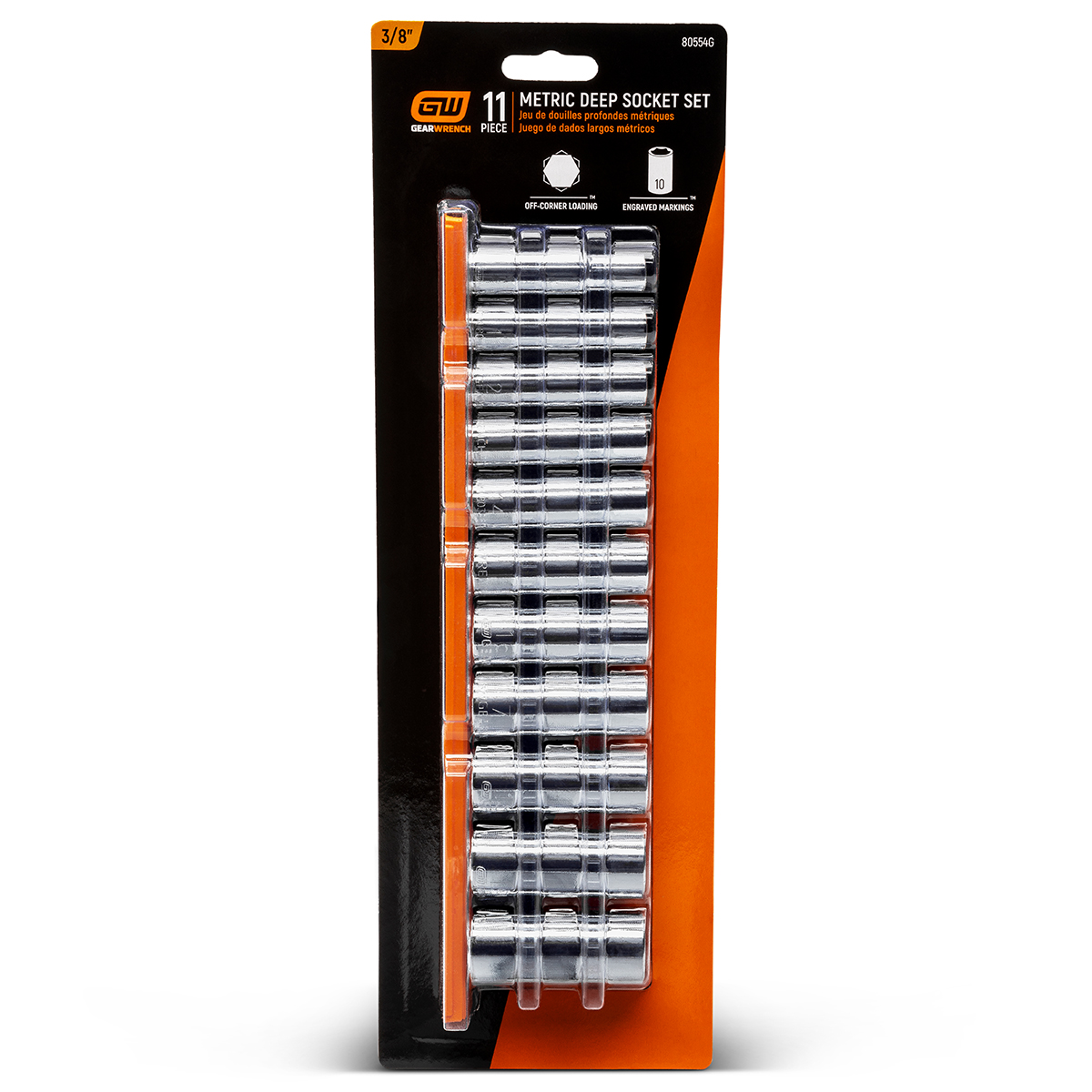 The GEARWRENCH 11pc 3/8in Drive 6-Point Deep Socket Set (10mm-21mm) is designed for precision; durability; and ease of use.