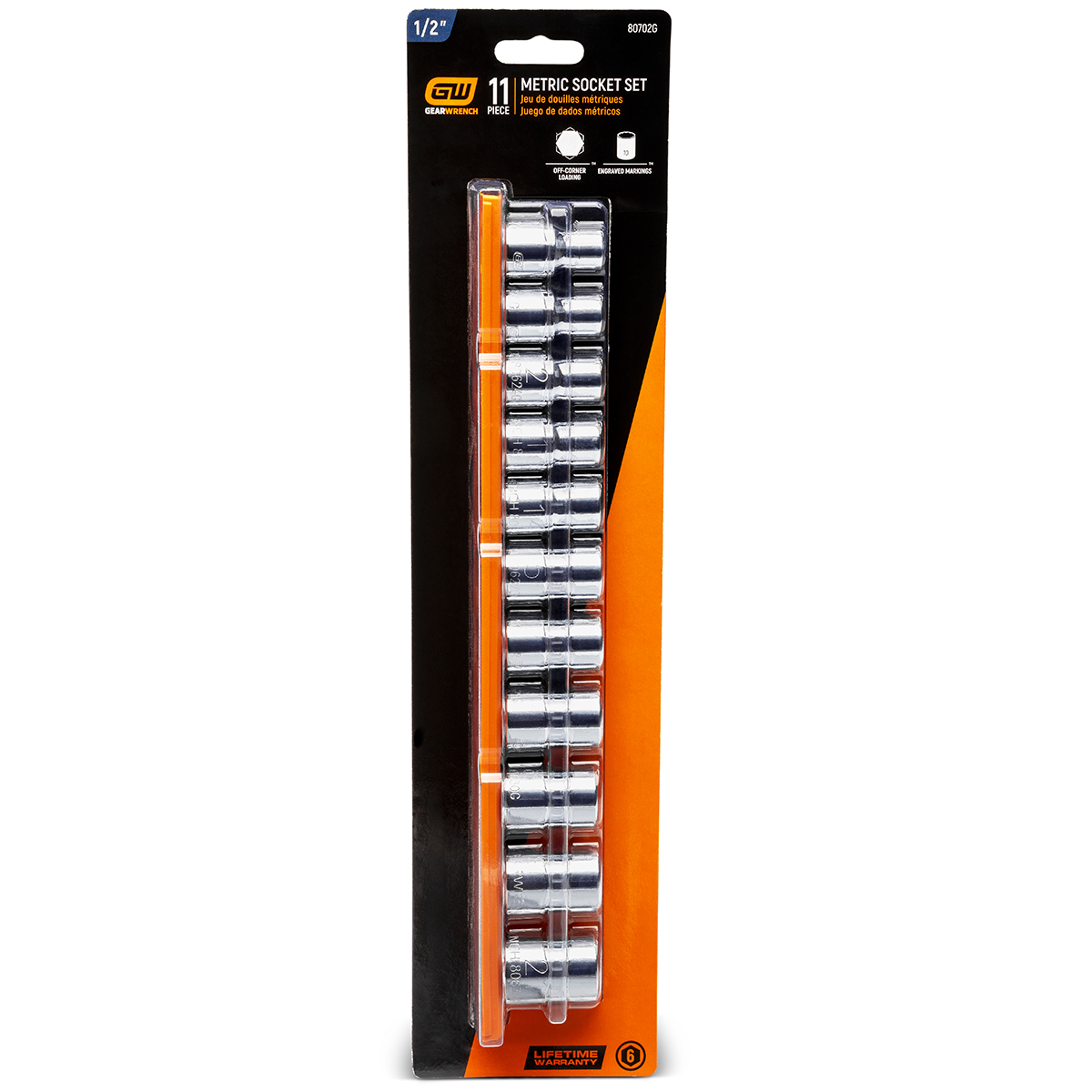 The GEARWRENCH 11pc 1/2in Drive 6-Point Standard Socket Set (4mm-14mm) is designed for precision; durability; and ease of use.
