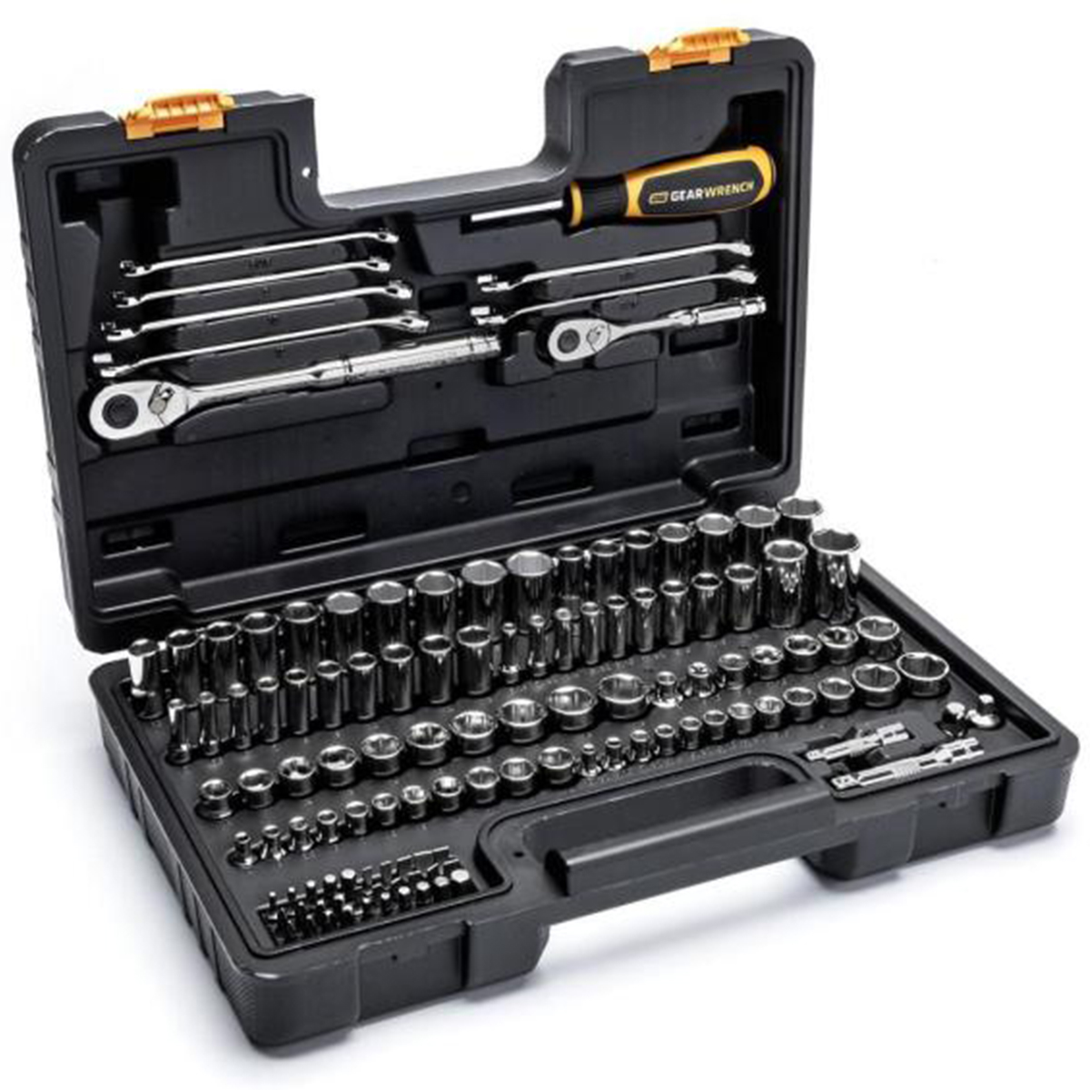 GW72SCBMTS is a 121 piece 1/4 in.; and 3/8 in drive mechanics tool set that features precision 6 point sockets in SAE and metric sizes and in standard and deep lengths.