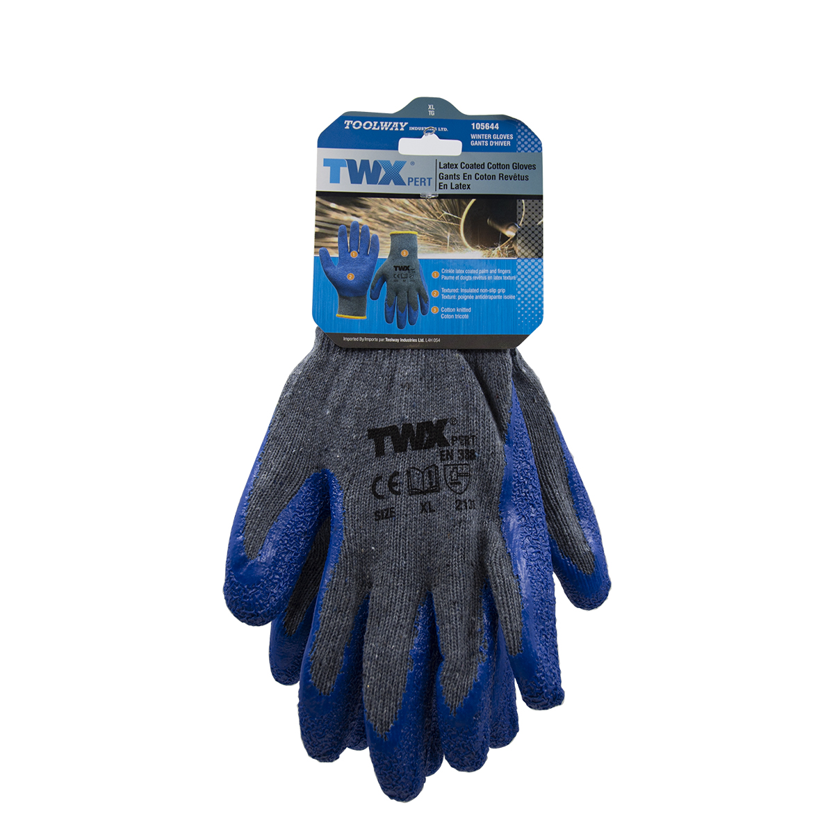 1dz. Knitted Cotton Gloves Gray With Crinkle Latex Palm Blue (XL)