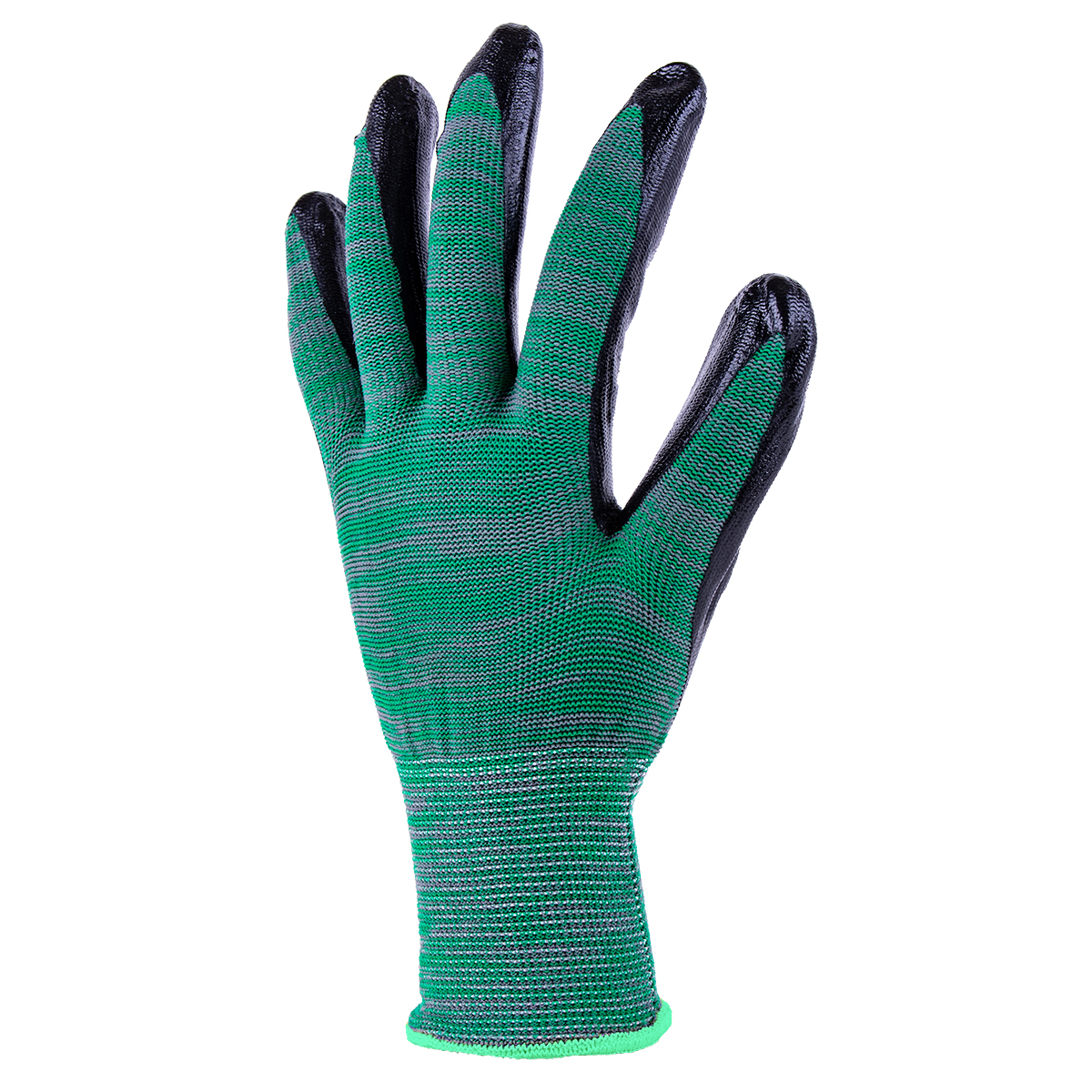 1dz. Knitted Polyester Gloves Green With Black Nitrile Palm (L)
