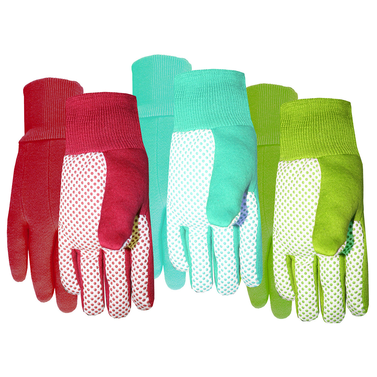 1Pair Gloves Garden Ladies Jersey/Canvas W/Grip Dot Palm Size: M Lime/Aqua/Raspberry