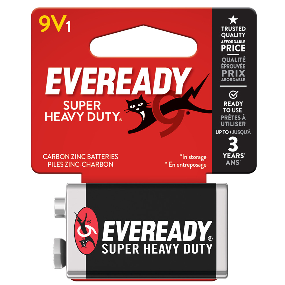 EVEREADY® Super Heavy Duty® is the affordable Carbon Zinc solution that provides power for you and your family’s basic power needs. EVEREADY® Super Heavy Duty® brand offers a complete line of AA; AAA; C; D; 9v and 6v lantern batteries and are an economical choice for clocks; flashlights; radios and other devices that are low drain. Since 1896 EVEREADY® batteries have been providing dependable portable power. For every family; everywhere; every day. EVEREADY® for Life.