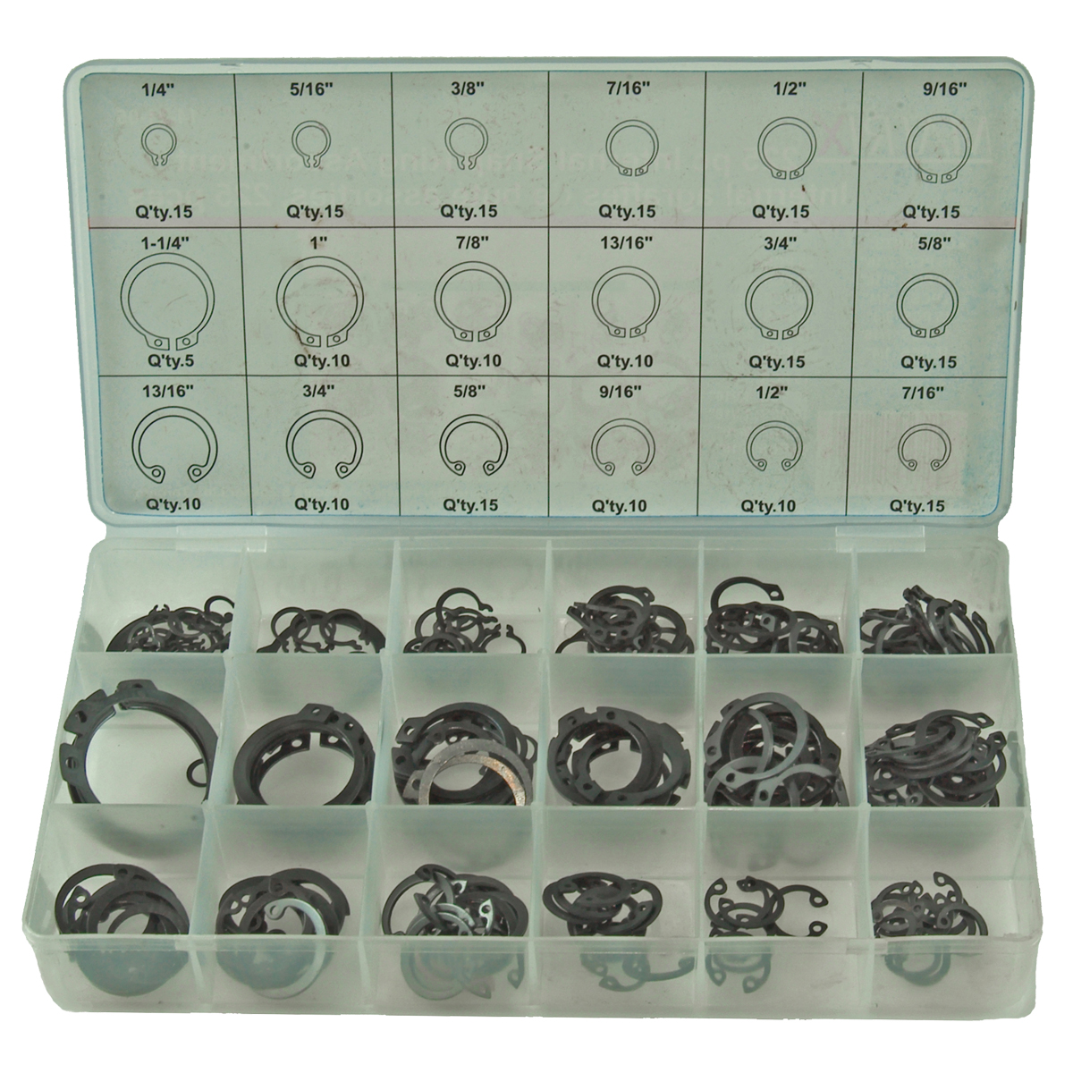 Contains: (15) 7/16in; (10) 9/16in; (5) 1-1/4in; (15) 3/4in; (15) 7/16in; (15) 1/4in; (25) 1/2in; (10) 3/4in; (10) 7/8in; (15) 5/8in; (15) 3/8in; (10) 1in; (15) 5/8in; (10) 13/16in; (10) 13/16in; (15) 9/16in; (15) 5/16in.