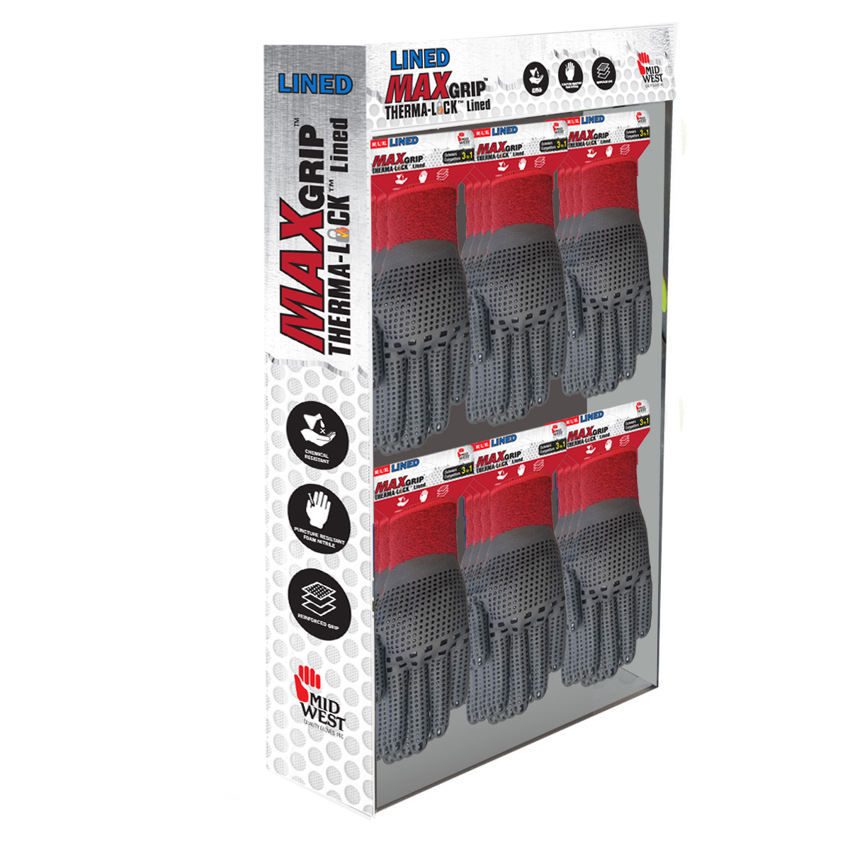 24 Pairs Display Unisex Max Grip Work Gloves Therma-Lock Lined Knit Wrist Size: L