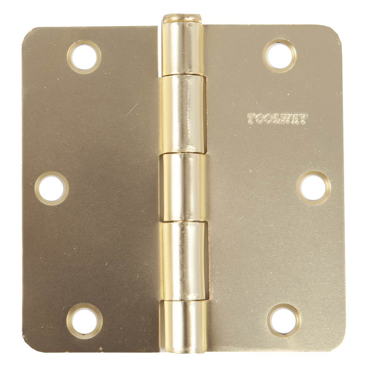2PC Door Hinge 3 ½in x 3 ½in Round Corner ¼in Brass Plated Steel
