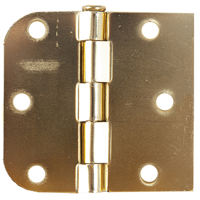 2PC Door Hinge 3in x 3in Round Corner 5/8in & Square Corner Brass Plated Steel