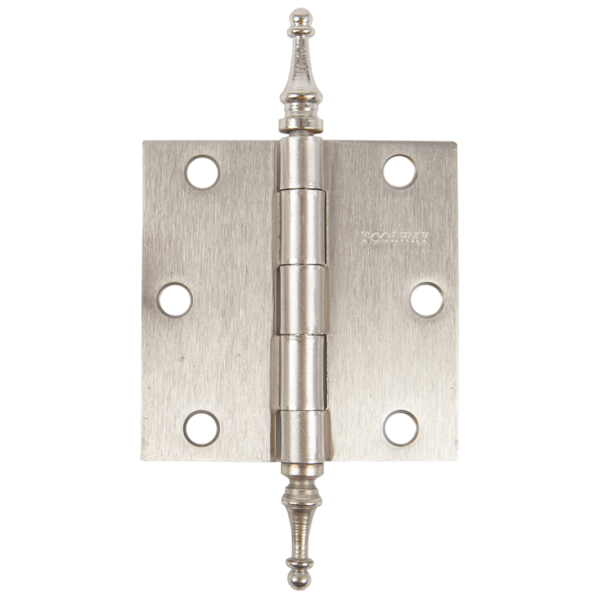 2PC Door Hinge 3in x 3in x 2mm Crown Tips Brushed Nickel Steel.