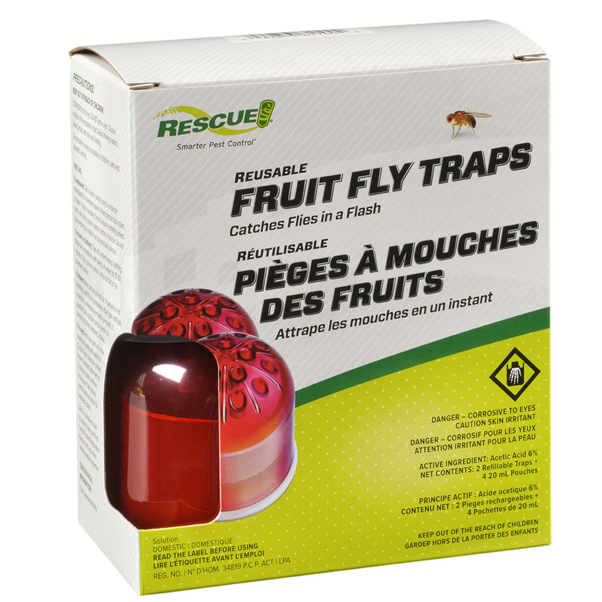 This trap uses a food-based lure and color proven attractive to fruit flies. Simply add the liquid attractant to the trap and it starts catching fruit flies within minutes. Each trap comes with a 30-day supply of attractant and is reusable with RESCUE! Fruit Fly Trap Attractant Refills. With more holes and a higher concentration of attractant, our exclusive design is proven to catch adult fruit flies eight times better than competitive traps.