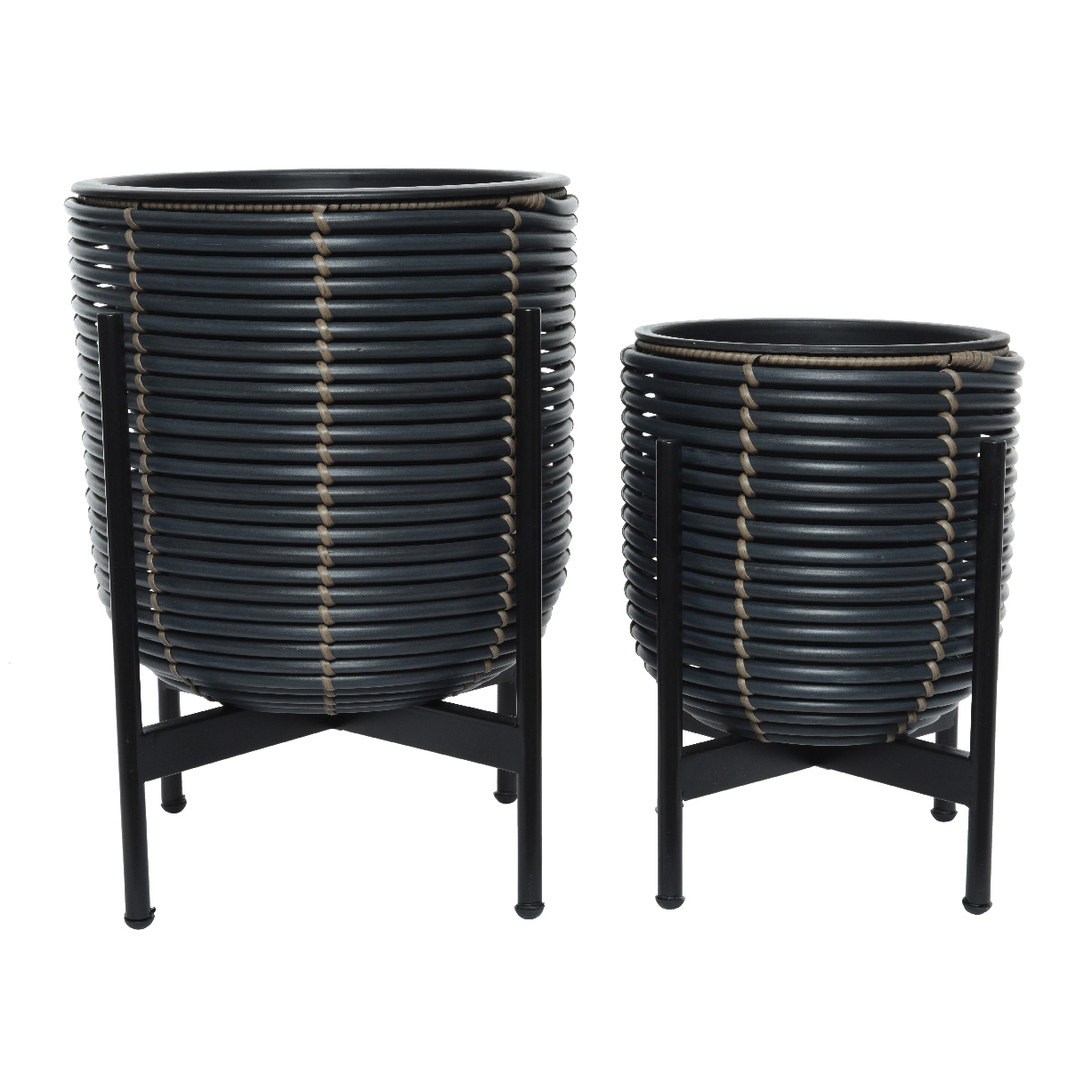 Make outdoor spaces uniquely your own with a Jolie Planter set from the ProYard® Décor Deluxe Collection. These beautiful poly-rattan planter sets feature hand-woven wicker in two finishes, are lightweight, waterproof, weather, and UV resistant. Perfect for indoor or outdoor use, each planter comes with a 4-legged iron stand, liner with drain hole knock-out and plug.