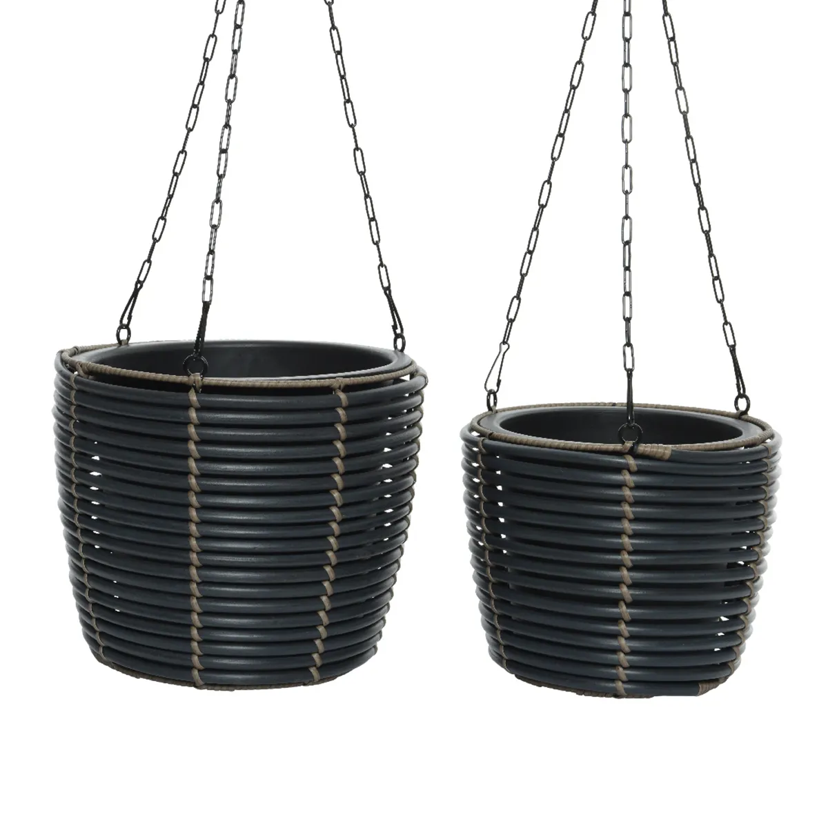 2Pc Jolie Polyrattan Hanging Planter Set Anthracite