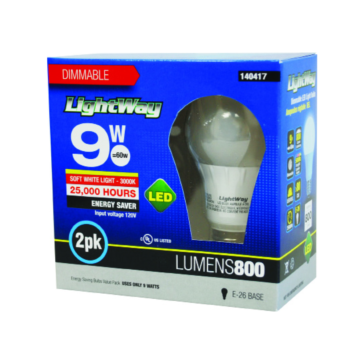 A19 LED 9W dimmable bulb.