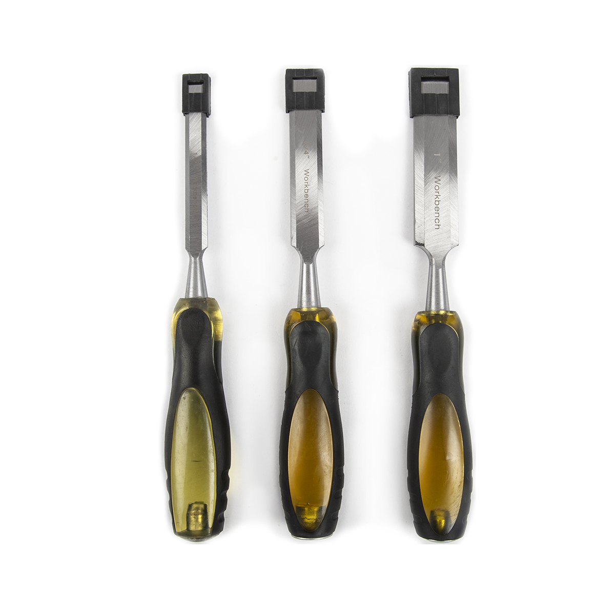 The Tooltech Workbench 3 piece professional wood chisel set.