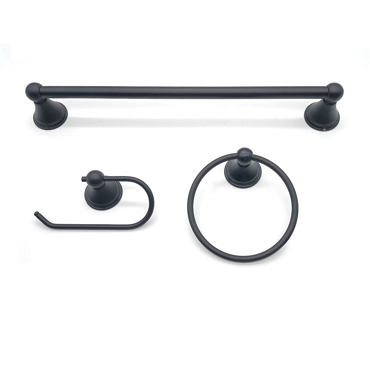 Set includes: 24 in towel bar, towel ring and toilet paper holder.