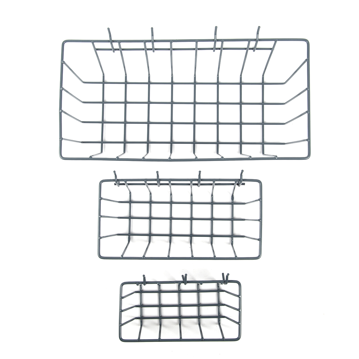 This set of Stinson pegboard baskets allows you to organize garage or workshop items that can not be hung on regular hooks. These baskets are made of plastic-coated steel and can hold up to 5 lb in weight. Hang them on pegboards with 1/4 in perforations.