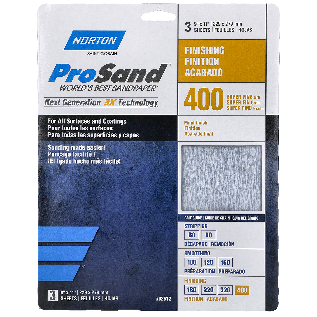 3PK Prosand High Perf.Sandpaper 9 x 11in Super Fine 400G