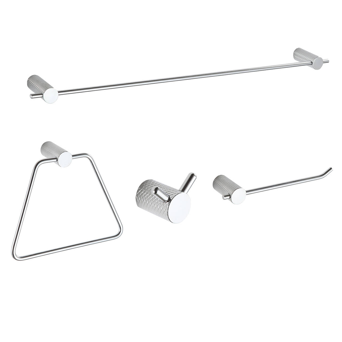 4PC Knurled Bathroom Hardware Wallmount Set Satin Chrome