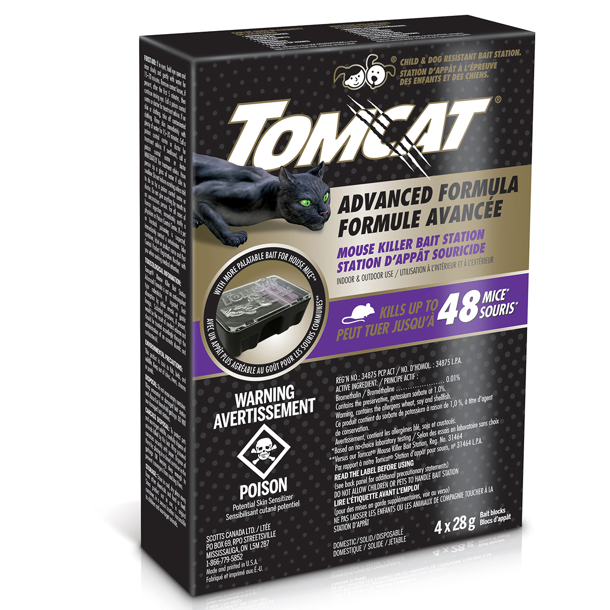 Tomcat Advanced Brand™ Mouse Bait with Disposable Station kills mice with bait that is formulated for increased attractiveness to house mice.