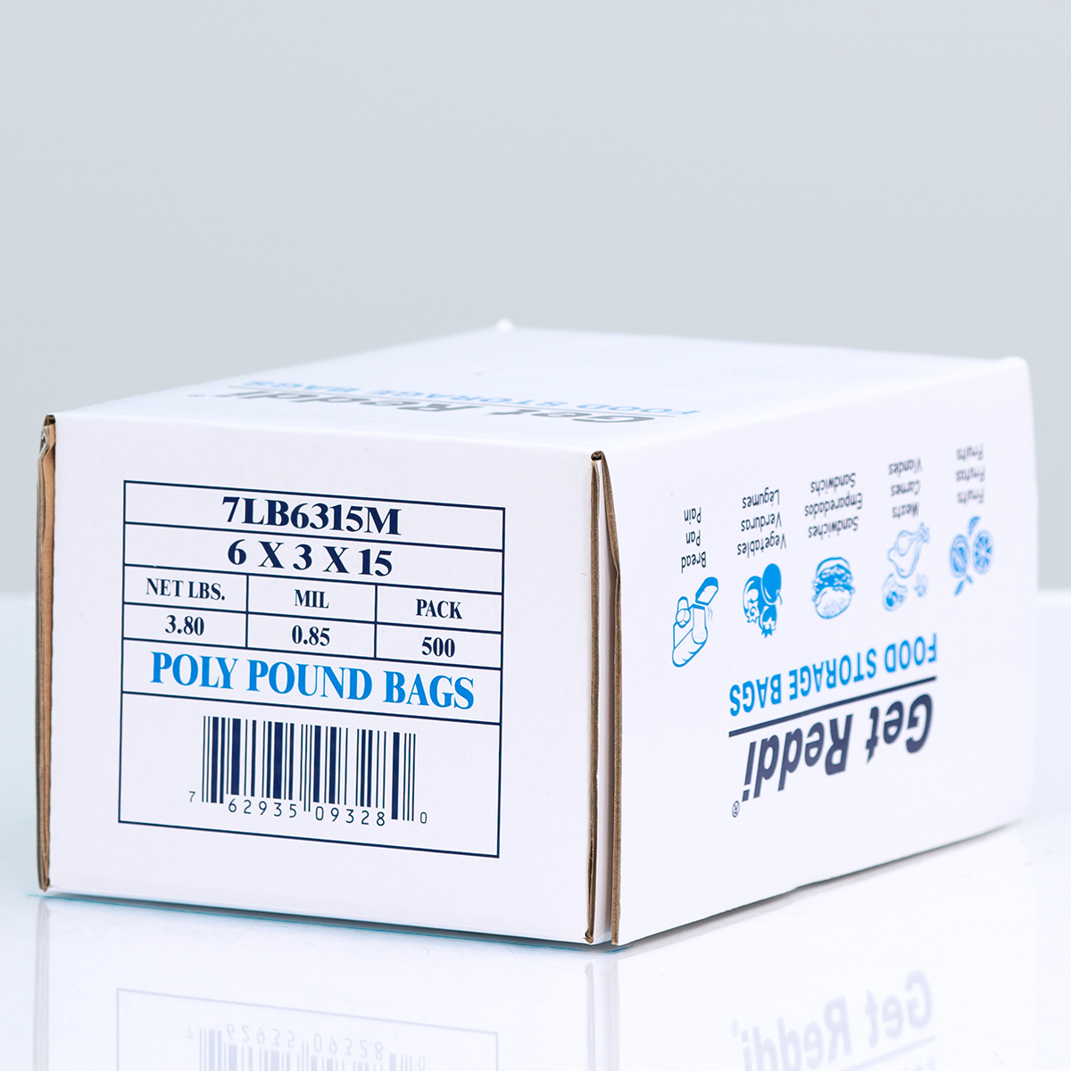 These food and utility gusseted poly pound bags are manufactured from Ultra-clear shiny gloss linear low density (LLDPE) film. Quick dispensing and compact packaging design to save you counter and shelf space.