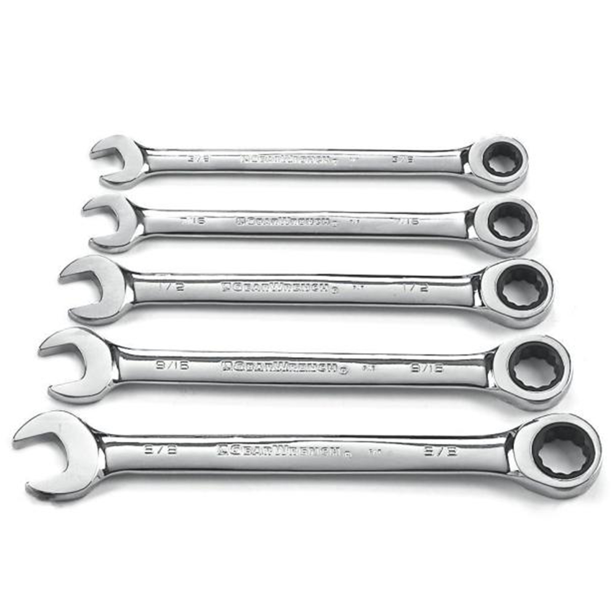 5PC Ratcheting Combination Wrench Set 72-Tooth 12-Point - SAE