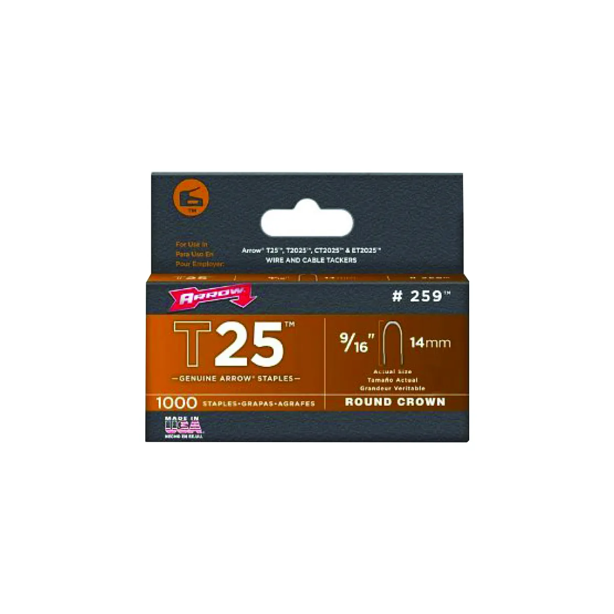 T25 staples feature a round crown design that secures wires without damaging them. The leading choice for low voltage wire applications; the T25 staple is an absolute boss when installing garage door openers; thermostat wire; doorbell wire; alarm systems; and much more. Also works great on computer; CAT5/CAT6. RG6/RG9; COAX and phone cables. All Arrow T25 staples are made under strict quality controls.