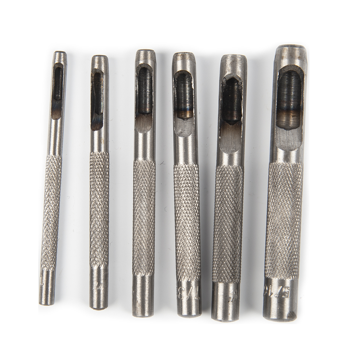 6 Pieces hollow punch set. Content: 1/8; 5/32; 3/16; 1/4; 5/16; 3/8 inch.