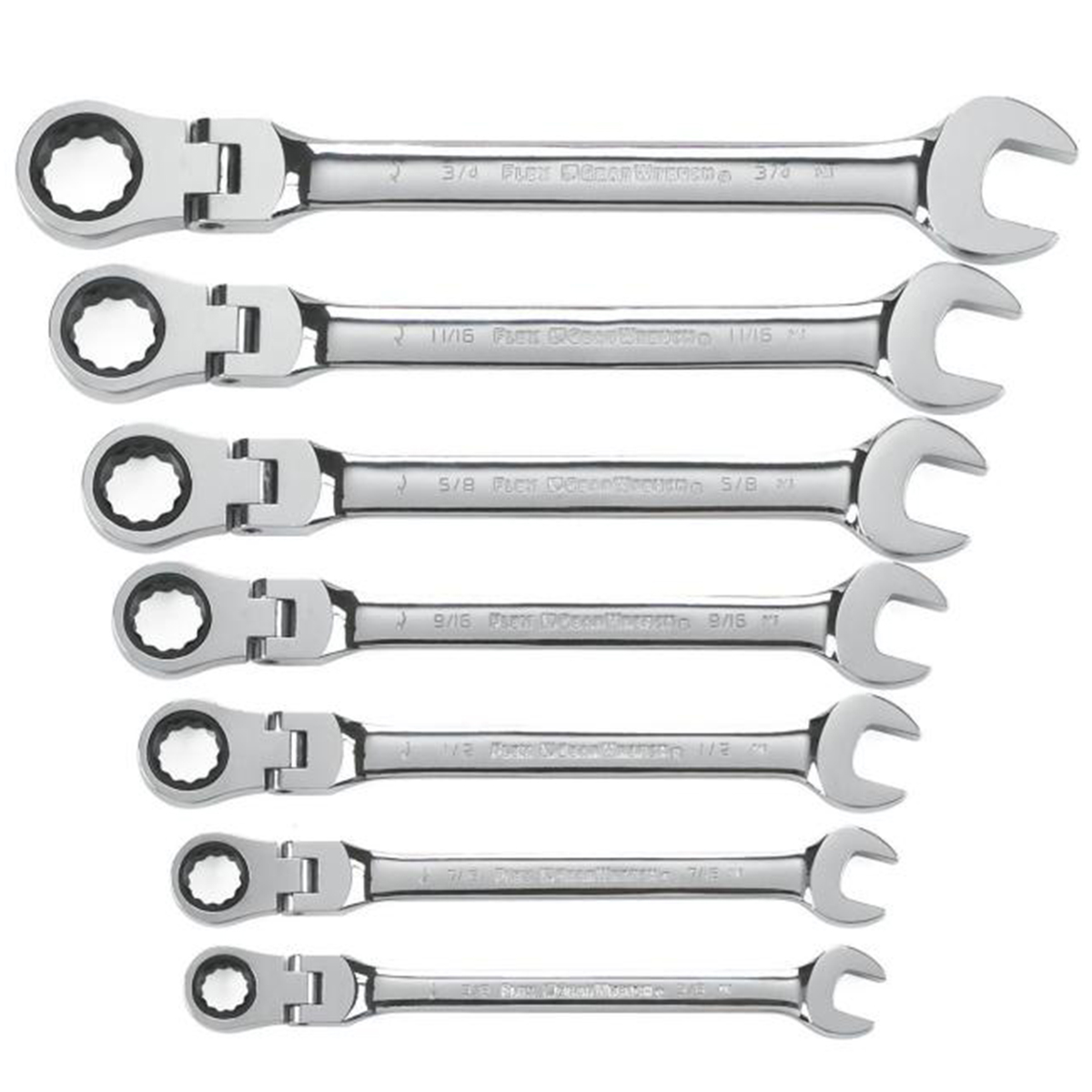 7PC Flex Head Ratcheting Combination Wrench Set 72-Tooth 12-Point - SAE