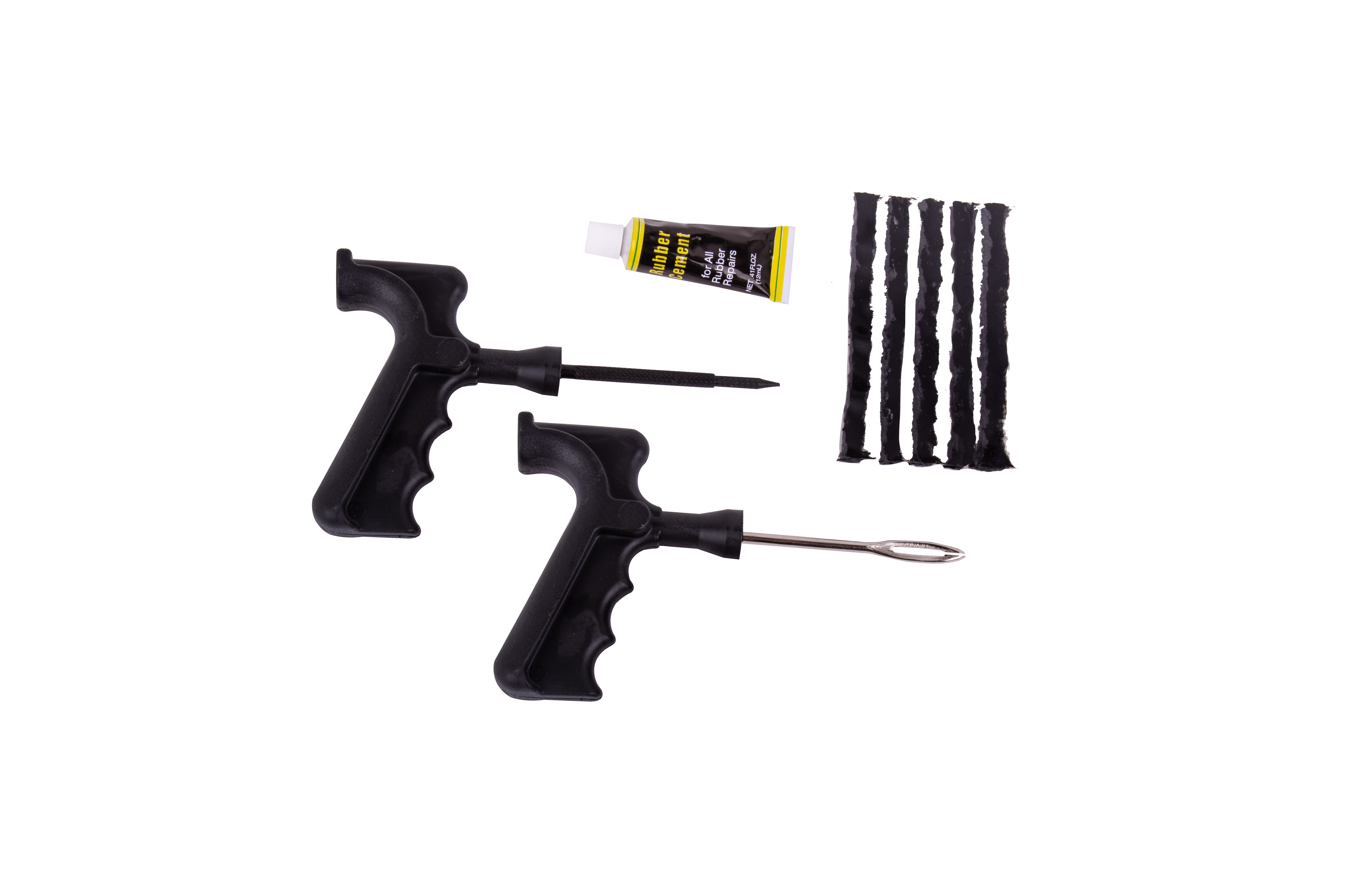 - Includes: (1) pistol grip plunger; (1) pistol grip reamer; (1) 12ml rubber cement; (5) 4in repair strings.