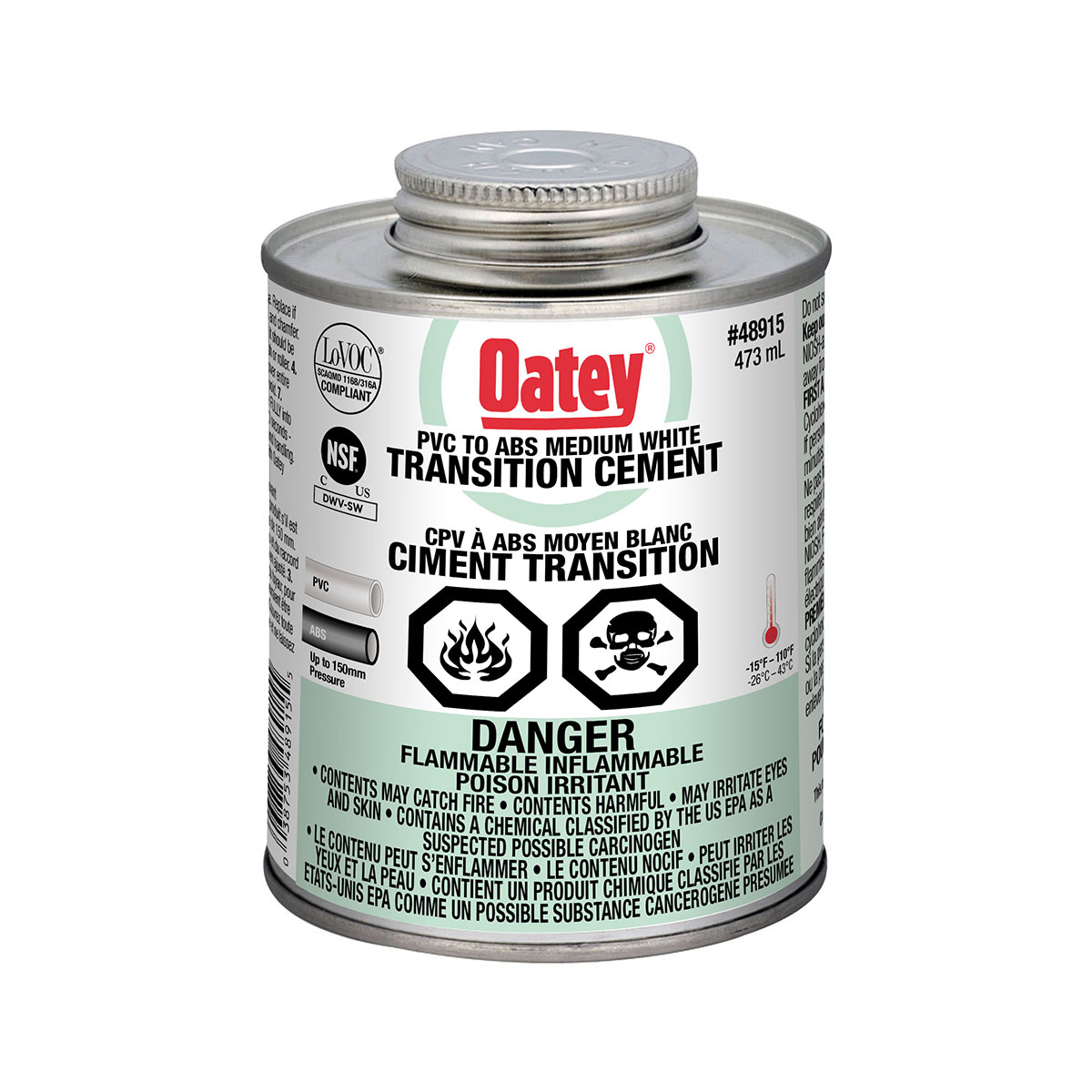 The Oatey transition cement white 473 ml.