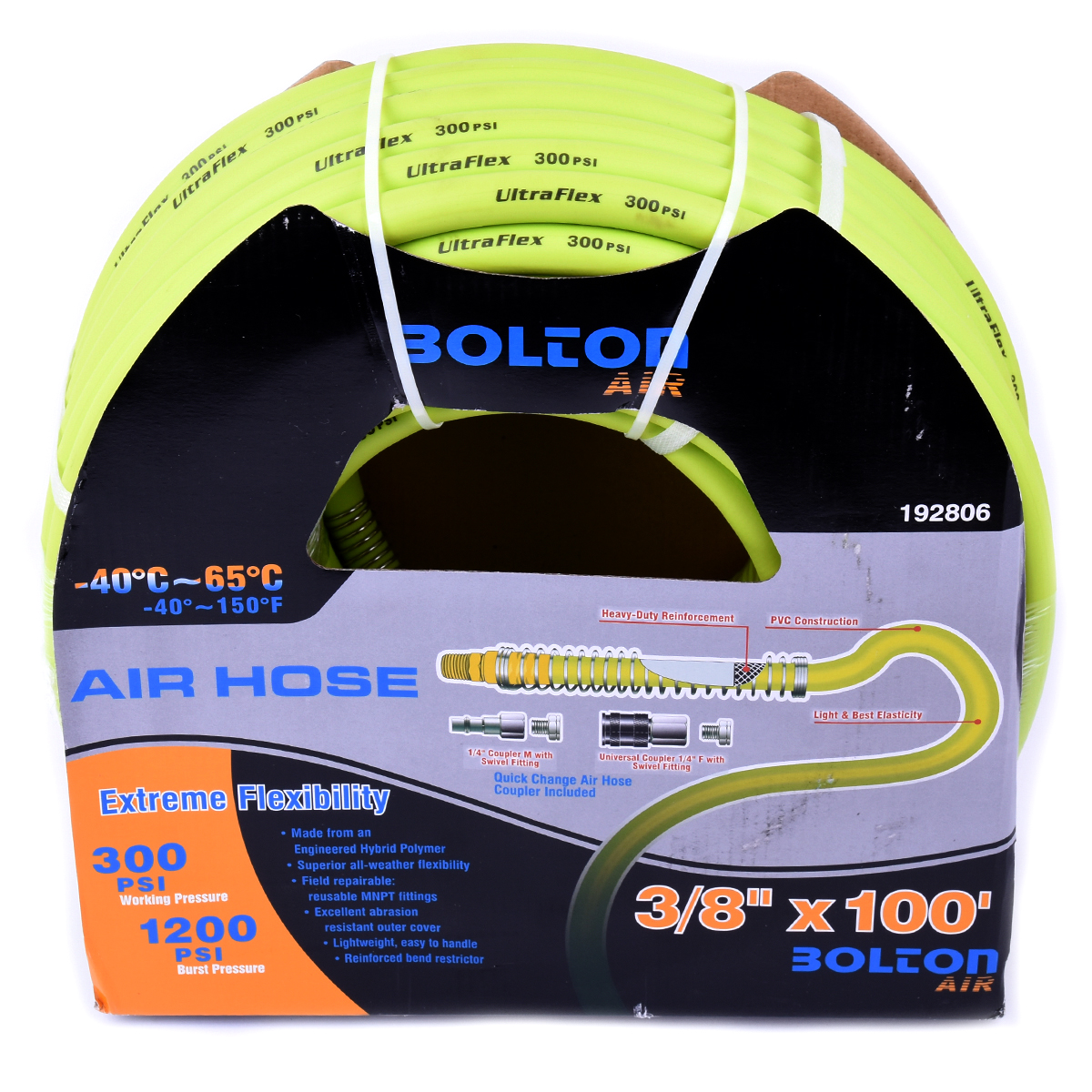 Tooltech Air hoses by Toolway are constructed from engineered hybrid polymer making them extremely durable and able to remain flexible from-45-Degree C to Plus 65-Degree C.; making them your first choice for all your pneumatic air tools needs.