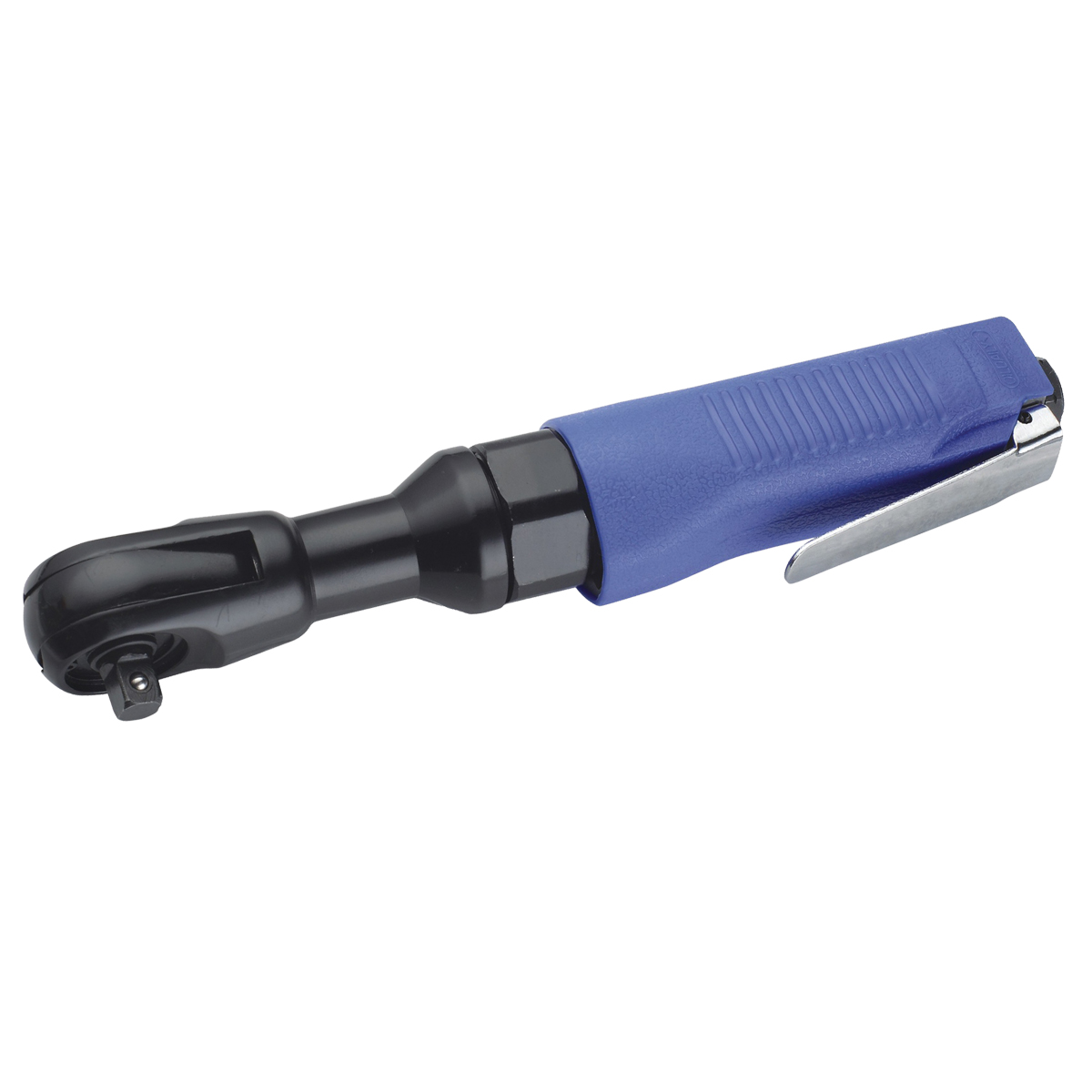 Tooltech Air Ratchet Wrench is comfortable in your hand and built to last. 1/4 inch long reach air ratchet delivers 45 ft/lb of maximum torque and 150 RPM free speed resulting in plenty of power to get the job done fast. Extended head offers long reach; while its compact size and ergonomic handle brings smooth and convenient operation.