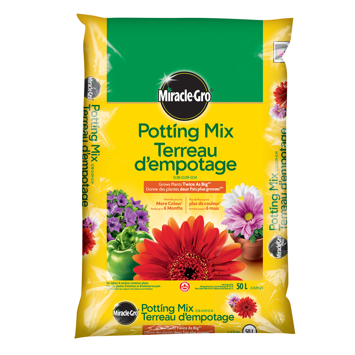 Why settle for ordinary when Miracle-Gro. Potting mix grows plants Twice As Big®.! Ideal for all your indoor and outdoor container projects; this blend of horticultural-grade ingredients improves soil aeration and drainage for strong root development. Pick up a bag and watch your flowers and plants grow!.