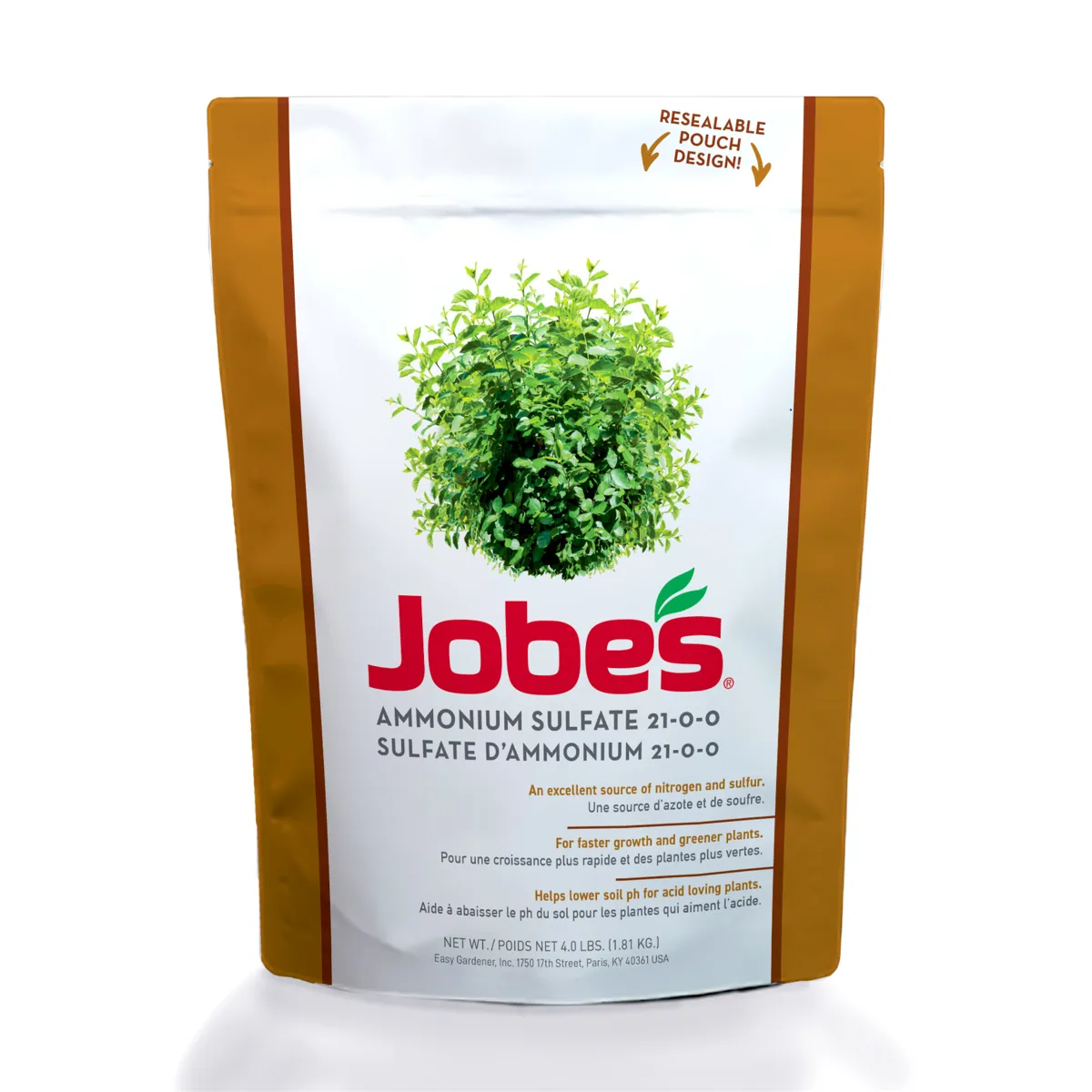 The primary use of Jobe’s Ammonium Sulfate is as a fertilizer for alkaline soils In the soil; the ammonium ion is released and forms a small amount of acid; lowering the pH balance of the soil; while contributing essential nitrogen for plant growth.