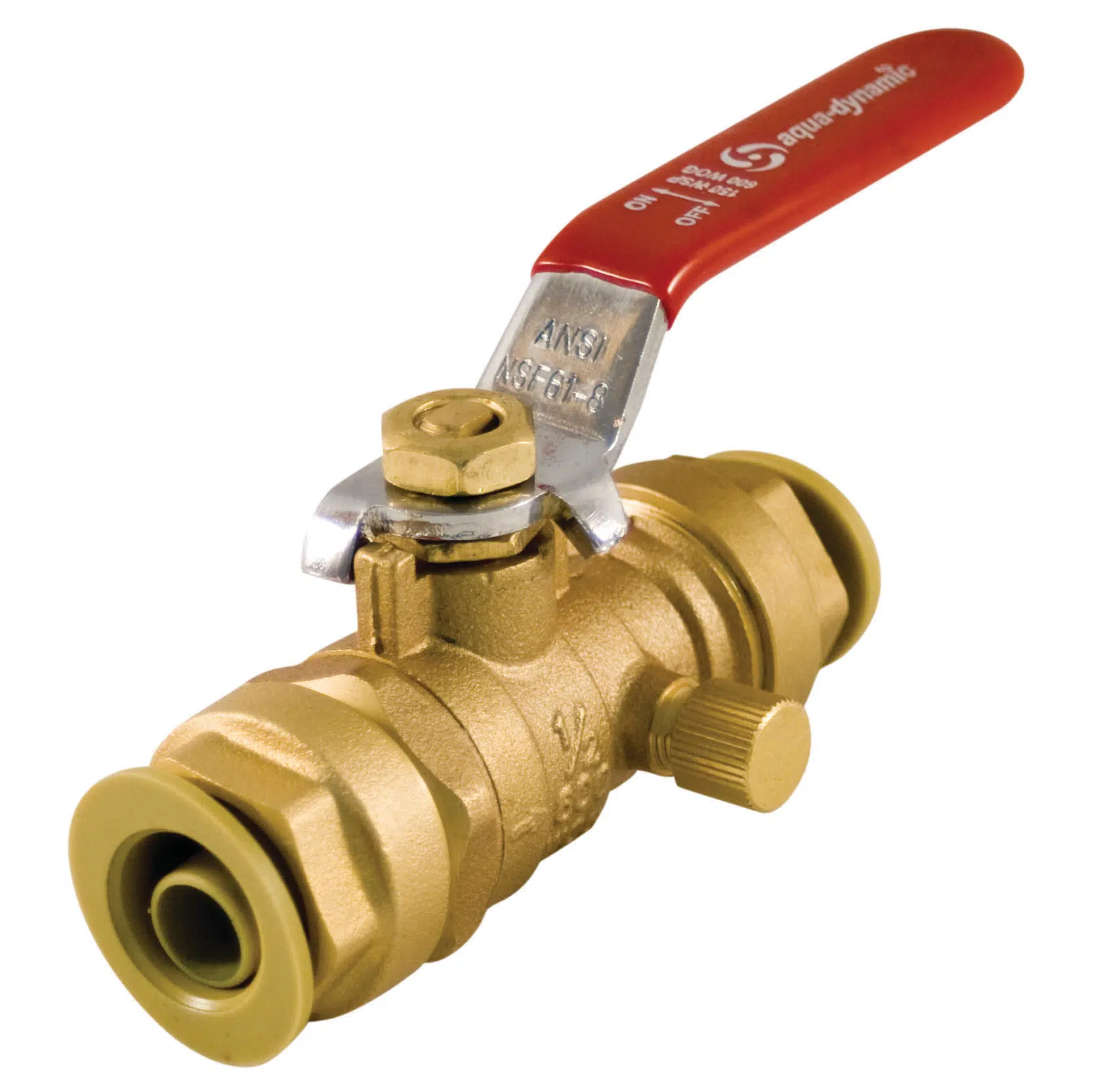 Ball Valve w/Drain Push Fit Lead Free 1/2in