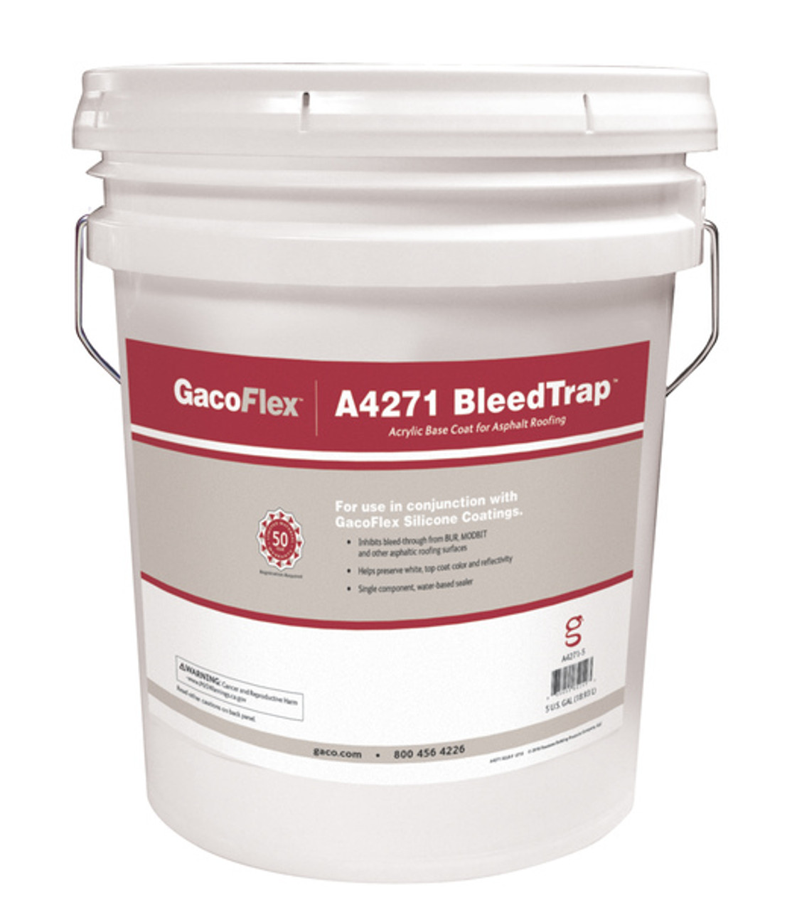 Developed to maintain the fresh color of a newly coated roof; GacoFlex A4271 BleedTrap Acrylic Base Coat for asphalt roofing helps inhibit bleed-through of oil commonly found in substrates containing bitumen. This single component; easy to apply water-based sealer helps preserve the aesthetic and reflectivity of coatings on asphaltic roofing systems. This includes built up roofing (BUR); modified bitumen (ModBit); and smooth or granulated asphaltic roofing membranes.
