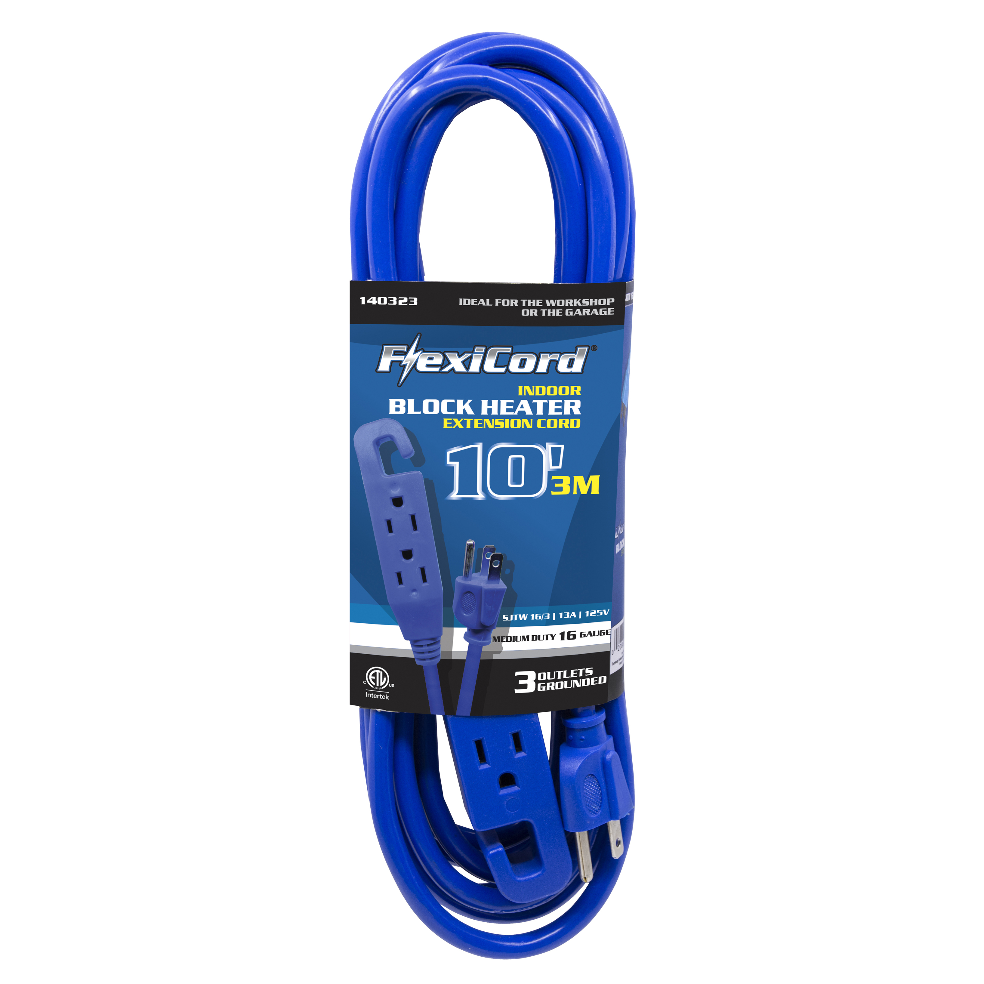 Block Heater Extension Cord Outdoor SJTW 16/3 3-Tap 10ft Blue