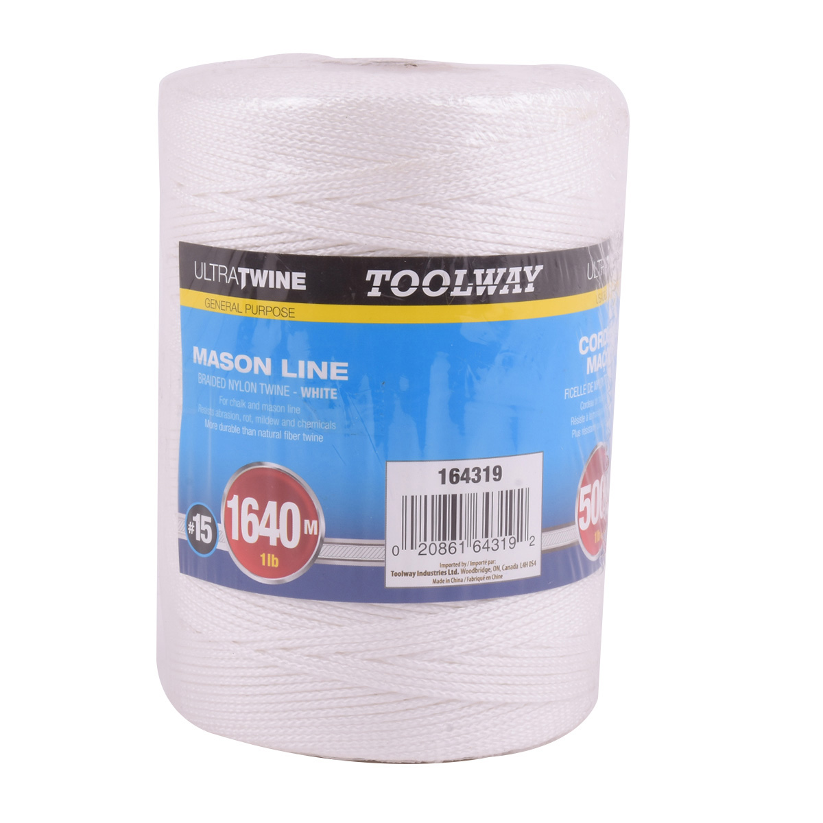 Nylon mason line is a heavy duty mid-stretch twine that is perfect for a wide range of indoor and outdoor activities, including fishing, boating, masonry, crafting, gardening, marking, and DIY projects. It has excellent abrasion resistance and does not unravel. Synthetic nylon fibers provide a durable, long-lasting twine that is naturally resistant to moisture, chemicals, oils, rot, and weather conditions.