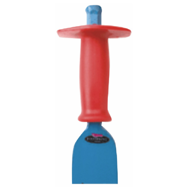 A carbon steel blade; with protective grip and anti-mushrooming head; used to smooth the rippled surface left by scuffing. Sometimes known as an edge in chisel.