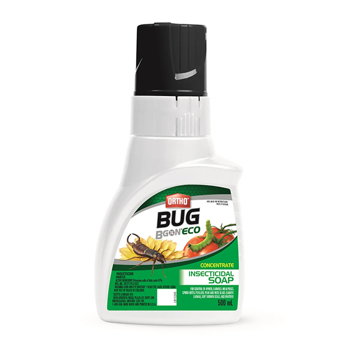 - Ortho® Bug B Gon® ECO insecticidal soap is formulated for effective control of aphids; mealybugs; psyllids; spider mites; sawfly larvae; soft brown scale; and whitefly.
