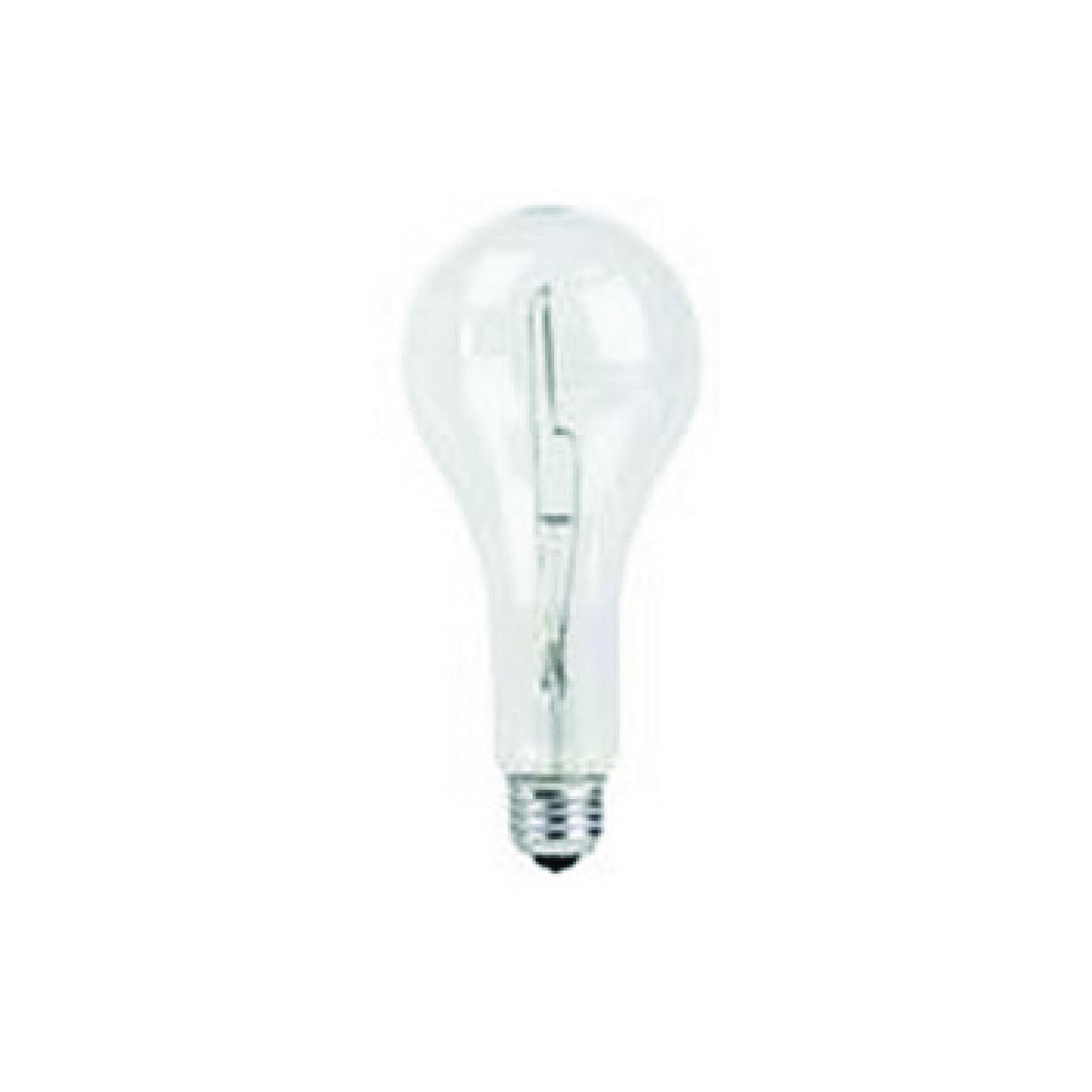 Incandescent technology. Larger light bulb that fits medium base socket. Standard Life Incandescent; vacuum or gas-filled lamp has a crystal clear bulb and a completely visible filament; so the brightness of the light is not softened. It imparts a sparkling radiance to larger luminaires and wall brackets with textured or satin-etched glass and cut crystal. It is the appropriate lamp for large luminaires with clear glass bowls; mounted indoors or outdoors. It is recommended in all such cases where brilliance and sparkle are more important than the avoidance of glare. These lamps are also used for indirect lighting in closed luminaires.