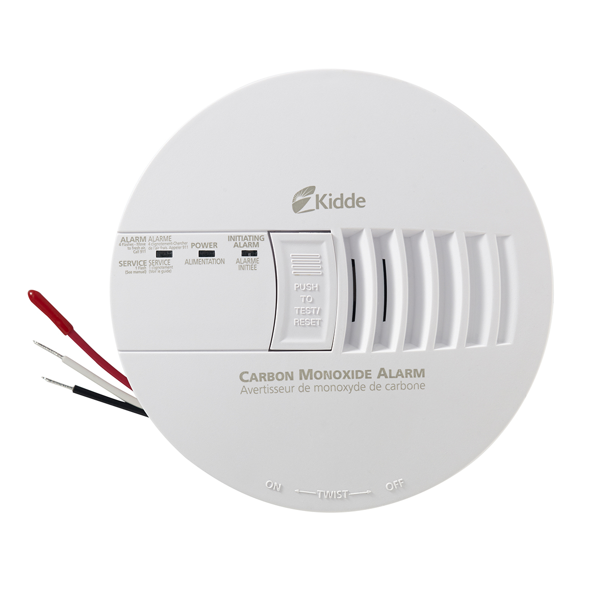 - Hardwire unit with test and reset button to verify alarm operation by pressing the test button to perform a diagnostic test.