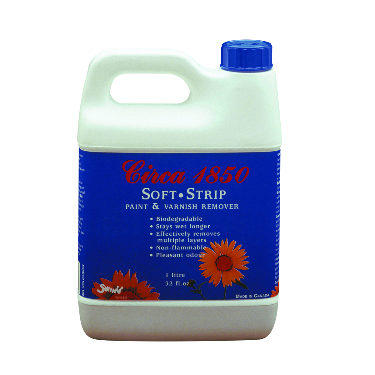 Circa 1850 Soft strip is an alternative way to effectively remove paint; varnish; shellac; lacquer and polyurethane from all your fine furniture; woodwork and metal. With its pleasant odor; Circa 1850 Soft strip can easily be used indoors. Because it stays wet longer; you will see it remove multiple layers with ease. Soft Strip does not contain any methylene chloride or NMP; is non-flammable and biodegradable.