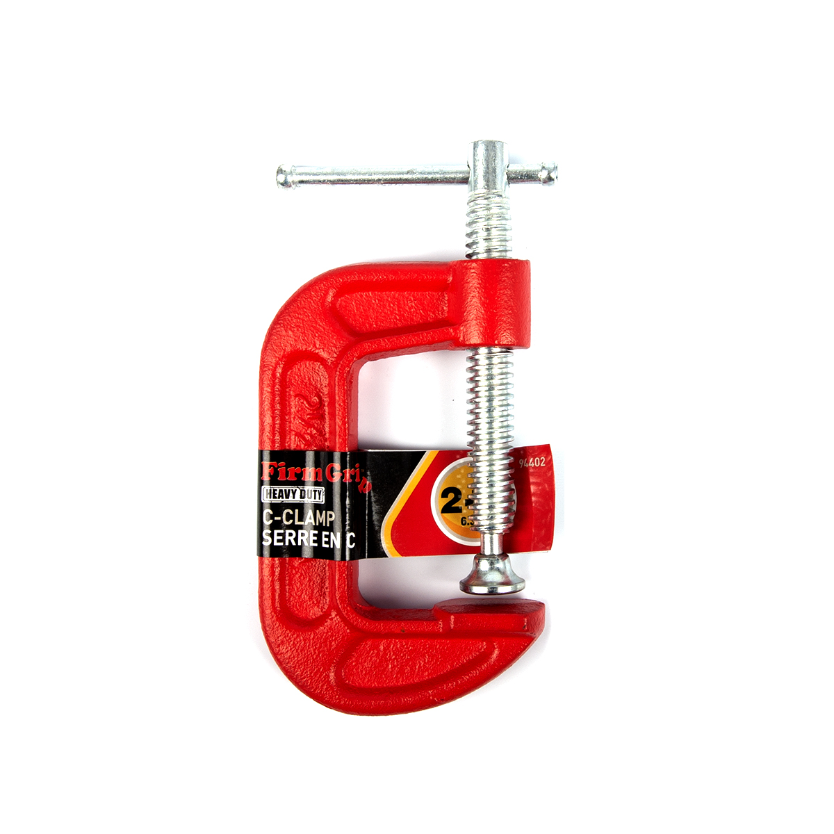 A C-clamp is a type of clamp device typically used to hold a wood or metal work piece; and often used in; but are not limited to; carpentry and welding. C-Clamps with their screws are intended as a temporary means to fasten two objects together by applying inward pressure to their outer surfaces. C-Clamps act as a second set of hands so the user has their hands free to work on the fastened objects. The c-clamp's hardened jaws give you increased gripping power and they are made of forged alloy for maximum durability; perfect for the toughest of job sites.