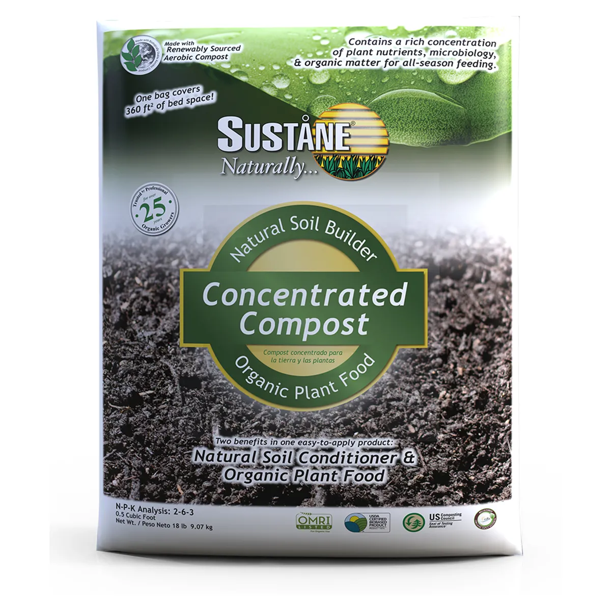 Providing you with the benefits of a nutrient rich compost in a concentrated dry form. Sustane natural fertilizer is a soil amendment that is both a high-quality compost and an organic fertilizer. It replenishes the soil with stabilized organic matter; beneficial microorganisms and essential nutrients required for healthy plant growth. Use concentrated compost to improve garden soils; potting mixes and to rebuild depleted soils. Be sure to apply at the beginning of the growing season or once every three months. 1 cup 0.3 lb of concentrated Compost.
