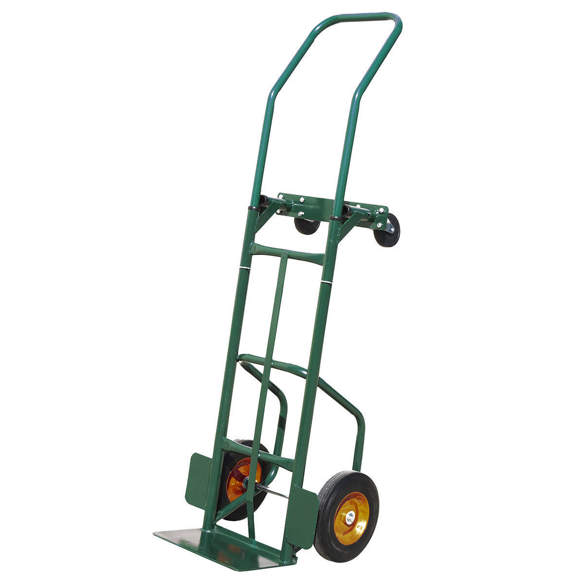 - Converts from a 2-wheel hand truck into a 4-wheel platform in seconds.